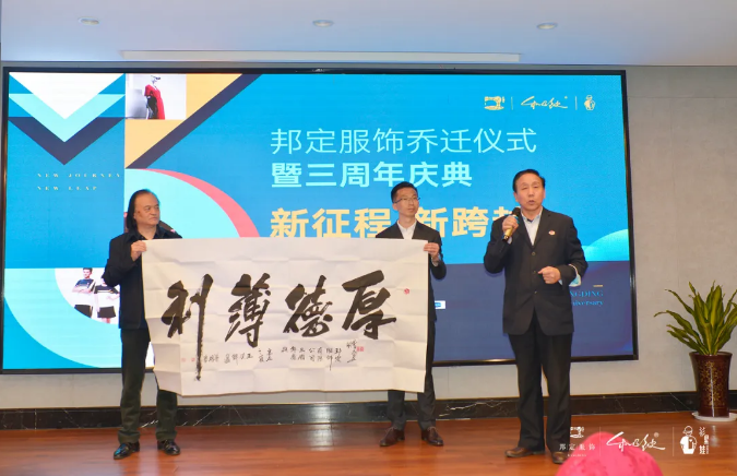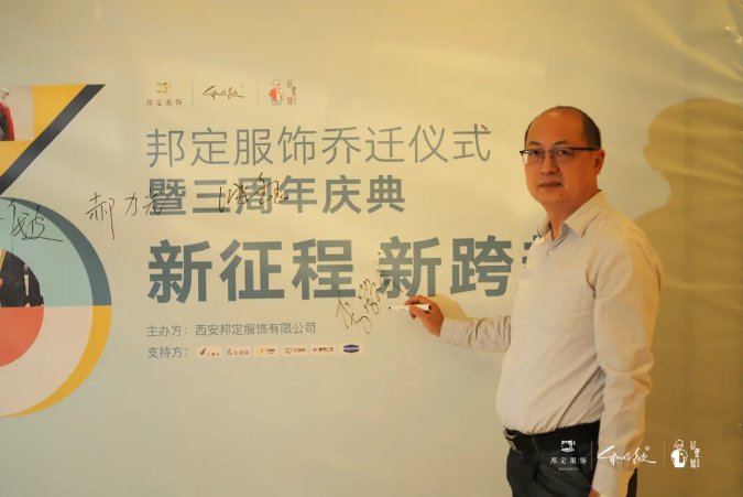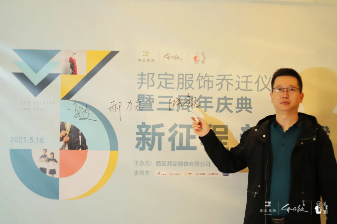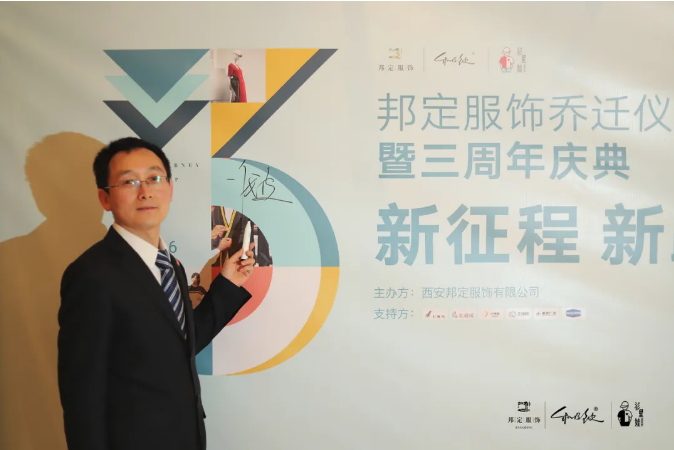 西安邦定服饰有限公司乔迁仪式暨三周年庆典活动5月16日上午在高新区蓝溪国际酒店隆重召开。 嘉宾签到入席 西安邦定服饰有限公司2018年成立以来,一直秉承个性、自由、时尚的设计理念,以定制天下、邦交四海的为发展理念,由一家居民楼贸易公司起步发展成为设计、生产、销售为一体的综合型现代化服装公司,2021年恰逢我国建党百年,十四五开局之年,邦定服饰借此由北郊未央区搬迁至西安高新区,立足高新,放眼西安,布局全国市场。 总经理肖海分享 本次活动有一直关心西安邦定服饰公司发展的西安工程大学学校老师、西安工程大学西安校友以及西安德商会、西安靖边商会、石榴集团、企迪网、西安未央区青年企业家协会各位创业企业家代表、合作伙伴80多位出席,出席本次活动的嘉宾有陕西省著名学者、陕西社会科学院研究员、陕西省政府参赞张宝通教授,西安工程大学党政办主任王晓先老师、扶贫办主任郭可义老师、西安工程大学校团委书记刘俊富老师、西安工程大学国内合作及校友工作处孟祥福老师、西安工程大学西安校友会会长魏兵、西安靖边商会会长冯志海、西安德商会会长孙旭东以及北京大学西安校友会苏联菊、南开大学西安校友会贾人民、山东商会党支部书记王芳、三秦都市报张维等代表。 专业拍摄现场 活动第一项首先由陕西社会科学院研究员、陕西省政府参赞张宝通教授致辞,他指出西安邦定服饰公司总经理肖海的创业之路,离不开创业者胆大敢闯敢拼的精神、敢于承受挫折的勇气以及不断应对抓住了多变的市场环境机遇;鼓励广大创业者敢打敢拼助推陕西企业经济发展。 陕西社会科学院研究员张宝通老师致辞 接下来由西安工程大学西安校友会秘书长秦天致辞,秦天指出西安邦定服饰有限公司总经理肖海是我校2008届优秀毕业生,创业之路也比较艰辛正是那一份执着及坚持才取得的今天成绩,西安邦定服饰不仅仅卖衣服,还很支持及参与各类社会公益活动,前身的龙啸商贸经常组织给山区孩子送温暖活动,肖海是一个具有大爱的校友,西安工程大学西安校友会将是他未来发展的坚强后盾,并预祝本次活动圆满成功。 西安工程大学西安校友会秘书长秦天致辞 最后由西安靖边商会会长冯志海致辞,他指出肖海是陕北靖边的家乡人,也是青年企业家代表,希望西安邦定服饰做好公司管理、市场开发及品牌建设,助推自己企业不断提升为家乡建设,成为一流企业,支持地方经济建设。 西安靖边商会会长冯志海致辞 活动第二项开启西安邦定服饰有限公司三周年庆典视频启动仪式。由张宝通教授、魏兵会长、孙启东会长、王芳书记5位嘉宾与肖海总经理一起启动邦定服饰三周年庆典活动。接下来观看祝福视频,分别来自西安工程大学粤港奥校友会会长董李、西安工程大学柯桥研究院院长郝振东、西安市助老爱幼慈善基金党支部以及全国各地知名企业家代表发来视频祝福,祝福邦定服饰越办越好,对邦定服饰发展寄予厚望。 大屏启动本次活动 活动第三项由西安工程大学校团委书记刘俊富为西安邦定服饰有限公司颁发西安工程大学大学生暑期社会实践基地奖牌,西安工程大学校团委刘俊富书记指出,西安邦定服饰有限公司肖海校友是我校优秀青年企业代表,大学生社会实践基地将促使校企联合,战略合作,实现高校人才暑期实践,增加社会阅历经验,为未来大学生就业增加砝码,也助推西安邦定服饰有限公司人才结构转型,希望西安邦定服饰继续指出学校工作,常回家看看,加强校企合作,沟通有无。 西安工程大学团委书记刘俊富为邦定服饰颁牌 活动第四项由西安本土互联网公司企迪网及西安石榴集团签订互联网平台战略合作签约;分别由各平台负责人和西安邦定服饰有限司总经理肖海进行签约相互递交签约本,标志着邦定服饰将布局互联网平台,进行创新发展,数字化转型,助推企业迈向全国,走向世界。 邦定服饰总经理肖海与企迪网董事长罗权 签订战略合作协议 邦定服饰总经理肖海与石榴集团董事长孙旭东 签订战略合作协议 活动最后由肖海总经理致答谢词并对西安邦定服饰有限公司未开发展做了战略规划说明,他指出一路艰辛走来,离不开广大合作伙伴、校友及同事支持,创业是一个艰苦奋斗的过程,是一个不断挑战不断进取蜕变的过程;西安邦定服饰发展从无到有,由文化衫贸易市场再逐步拥有自己三大品牌私凸彼、衫里娃、三学士综合型服务定制公司,也取得了一定成绩及口碑,一次次转型证明我们在超越自己也在不断进步,2021年正是十四五开局之年,再此布局未来,恰逢其时,未来将逐步走出大西安,布局全国,重视互联网营销及科技赋能,打造本土服装定制第一品牌。 总经理肖海分享邦定服饰未来公司规划 最后大会在欢乐祥和祝酒歌舞欢乐的气氛中结束,并进行了线上直播和抽奖活动,坚信西安邦定服饰有限公司将在肖海总经理带领下,依托广大合作伙伴支持,秉承邦交四海、定制天下企业发展宗旨,新的起点、新的征程已经出发,将一步步走向辉煌! 现场抽奖环节 感谢参与支持 西安广播电视台主持人楚儿 为友谊干杯 著名书法艺术家蒋普权老师 为邦定服饰赠字:厚德薄利 礼品呈现 活动合影拍照 邦定服饰乔迁仪式暨三周年庆典活动圆满结束,加油,我们都是追梦人,未来可期,衷心祝愿大家身体健康,工作顺利。