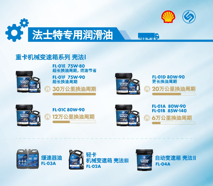 法士特是一家专注于汽车传动领域的企业,其在商用车变速器市场上取得了不错的成绩。凭借过硬的产品与贴心的服务,法士特积累了众多的忠实客户。 壳牌是一家致力于提供更多、更清洁的能源解决方案的企业,为中国可持续经济增长和繁荣贡献力量,与合作伙伴共推行业进步。 两个行业强企聚在一起,会擦出怎样的火花? 强强联合 聚焦后市场 2020年9月,法士特变速器累计产量正式突破1000万台,标志着法士特变速器市场销量从百万量级跃上千万量级。提到变速器的后市场,必然少不了润滑油的参与。尤其是对于未来智能化、信息化的变速器产品,润滑油的好坏对其对换挡的轻便性、及时性以及噪音都有影响,并且在提升传动效率与润滑度方面也起到非常大的作用。为此,法士特与壳牌联手,推出了法士特专用润滑油产品。 节能减排 绿色发展 据了解,法士特专用润滑油包含重卡机械变速器系列“壳法Ⅰ”、自动变速器“壳法Ⅱ”、轻卡机械变速器“壳法Ⅲ”、缓速器油等产品。作为专门为法士特机械变速器调配的长效换油里程型润滑油,壳法Ⅰ系列内不同品种的油品,在指定工况下,可实现6万、12万、20万、30万公里超长换油里程。换油周期延长可以最大限度地减少润滑油耗用量和产生的废油数量,从而帮助减少排放。 精益求精 服务用户 出色的产品也需要时间和实践的验证。法士特曾经做过数据分析,同样配置的车型,只有变速器油品不同,跟踪一年得到的数据显示:相较于普通油品变速器,长换油油品变速器的故障率低4%。为了给用户提供更好的使用体验,方便用户保养,法士特和壳牌从研发初期就紧密合作,谨慎实践,经历了多次的磨合与试验,以确保产品的优异性能。