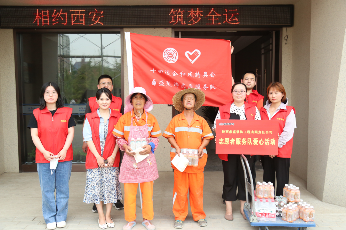 鼎盛装饰公司作为市级文明单位,长期以来致力于开展志愿者活动,积极弘扬正能量,通过活动号召公司职工及职工家属投入到志愿服务活动中,汇聚点滴爱心,在企业发展的同时回报社会,以实际行动助力“十四运”,为营造文明西安的良好氛围而努力!