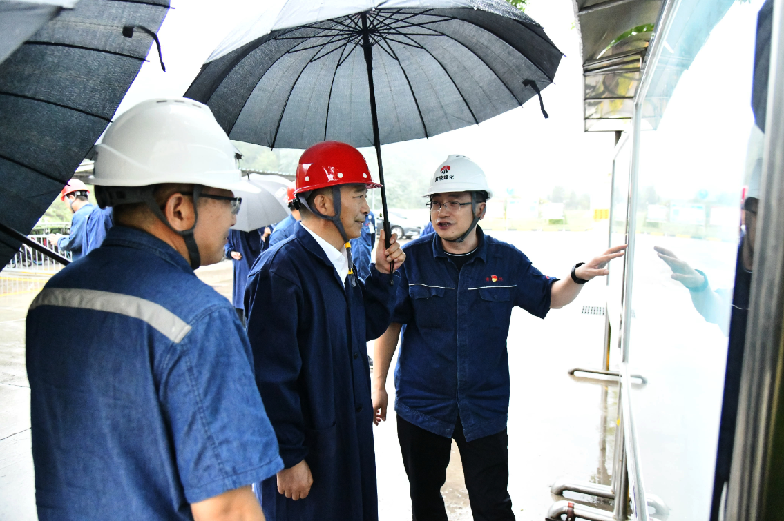 沮水河畔,蓝天白云,绿山逶迤相向开。整齐干净的化工装置与连绵的青山倒映在碧波中,此刻的黄陵煤化工公司今非昔比。 8月30日,陕西省国资委二级巡视员法自领、调研员翟高斌一行,到黄陵煤化工公司检查指导安全环保工作。陕煤集团总经理助理李厚志及化工集团相关领导陪同。 上午9:30分,伴随着连绵的秋雨,若隐若现的晨雾,法自领一行在黄陵煤化工公司领导班子的陪同下,深入该公司生化水处理、醇氨抗爆楼、液氨球罐、综合罐等生产区域,了解企业安全环保管理举措,实地查看企业安全环保提升效果,感受企业深入贯彻落实中、省加强生态文明建设取得的系列变化。 调研中,陕焦公司副总经理、黄陵煤化工公司党委书记孙润录重点围绕化工企业水、气、尘、固废等治理举措,介绍了企业近年来新建及技改的安全环保项目,提出了企业“十四五”发展规划设想,同时就企业生产经营成果、安全环保管理机制、“十四运”期间加强意识形态及安全生产管理等方面进行了汇报。 通过现场调研与座谈交流,法自领对黄陵煤化工公司近年来取得的变化表示肯定。他说,两年前来这里与今天来这里,心情完全不一样,没有想到仅仅两年的时间,黄陵煤化工公司在陕煤集团及陕焦公司的带领下,厂容厂貌、职工精神面貌等都在变化,特别是在安全环保治理方面取得了很大成绩,一系列的改变令人欣慰,你们打了一个漂亮的“翻身仗”。 就当前工作,法自领指出, “十四运”即将在陕西开幕,省委、省政府对安全生产、防汛等工作高度重视。他要求黄陵煤化工要进一步提高政治站位,提前细化部署,未雨绸缪,扛起国有企业应有的政治和历史担当,在全运会及“双节”期间做到一条底线:即“两不”,不死人、不伤人;瞄准“两个百分百”目标:即隐患排查覆盖率达到100%,隐患整改100%到位。同时,他希望黄陵煤化工公司百尺竿头思更进,高度重视中央环保督察工作,进一步对标国内先进焦化企业,紧盯行业先进工艺技术,发挥好自身优势,不断加强企业信息化、自动化建设,全面提升企业综合实力,力争交出一个合格的安全环保“答卷”,为陕西生态环境文明建设争光。