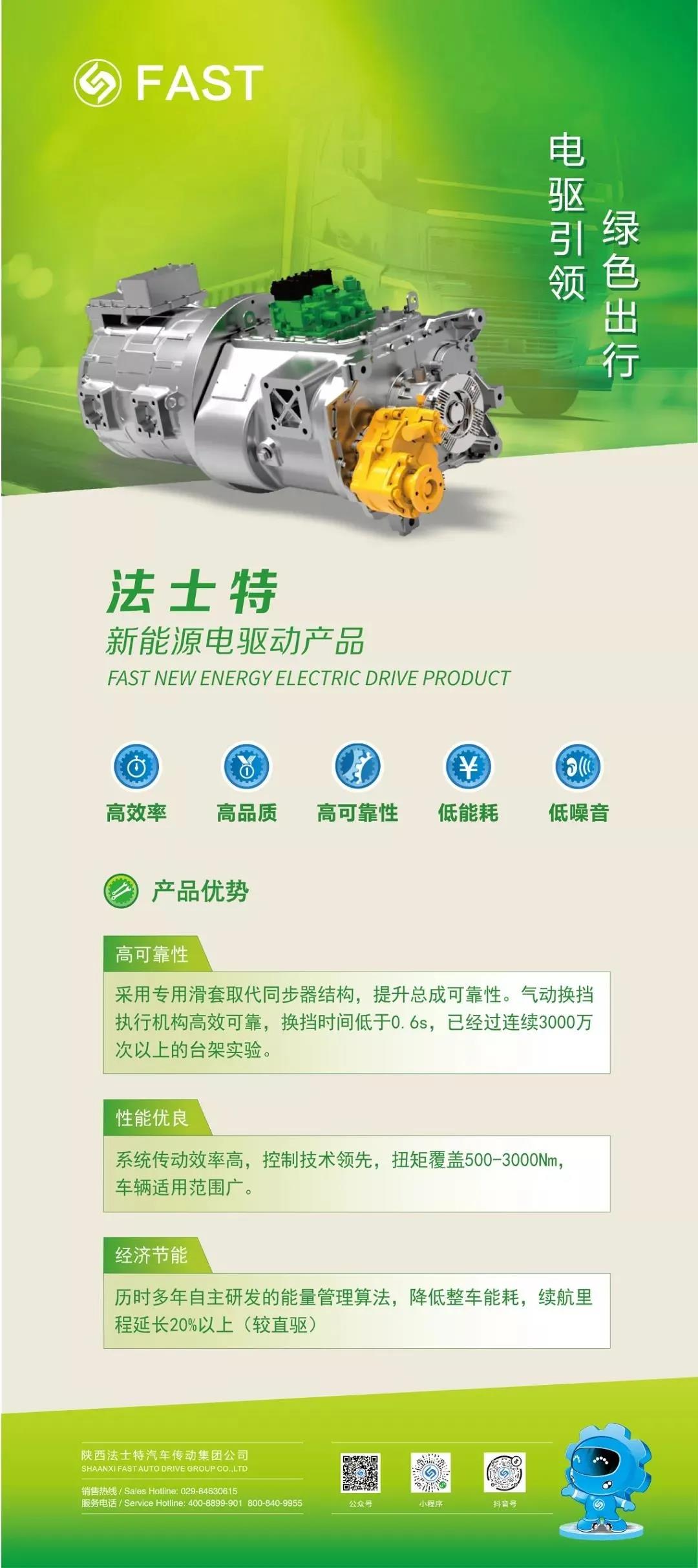 法士特新能源电驱动产品内部为自主设计的滑套结构,可靠性更高,先进的控制策略以及寿命可达3000万次的气动换挡执行机构,保证了系统换挡更平顺,换挡速度更快,使用成本更低。历时多年研发的能量管理算法,能根据不同工况自动调节能量回收强度,以及对附件能耗进行合理化管理,从而达到经济节能的效果。