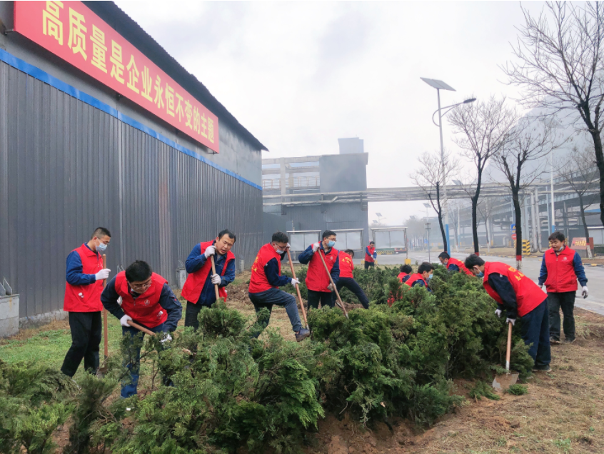 阳春三月,草长莺飞,植树添绿正当时,3月12日,陕焦公司黄陵煤化工公司党纪工团齐上阵,为了打造3A级旅游工厂这个共同的目标而齐聚厂区东主干道,开展“春风十里‘植’有你”主题植树活动。 “咱们把人分成两组,一组南边、一组北边,看谁干的快,怎么样?”“好啊,来,比一比!”其他人也不甘示弱地附和着。行政保卫中心的牛文刚一到活动地点就将活动搞成了比赛。 活动现场,大家激情满满,有的搬树、有的扶树,有的培土,有的夯实,齐心协力栽下了一棵棵翠绿的树苗,栽好的树苗,昂首挺立,给现场所有人种下了一个绿色的梦。 据了解,此次活动由公司党委牵头,行政保卫中心配合,利用党员带动团员,团员带动群众的形式,共移栽矮化松柏300余棵。 一棵一棵又一棵,两棵三棵四五棵,六棵七棵八九棵,棵棵皆成栋梁材。黄陵煤化工公司将不断践行节能降碳理念,用焦化人的实际行动,守护绿水青山就是金山银山的环保理念,让桥山更绿,让沮水更清,让绿色成为企业高质量发展的鲜明底色,为陕西的生态文明建设贡献出自己的力量。