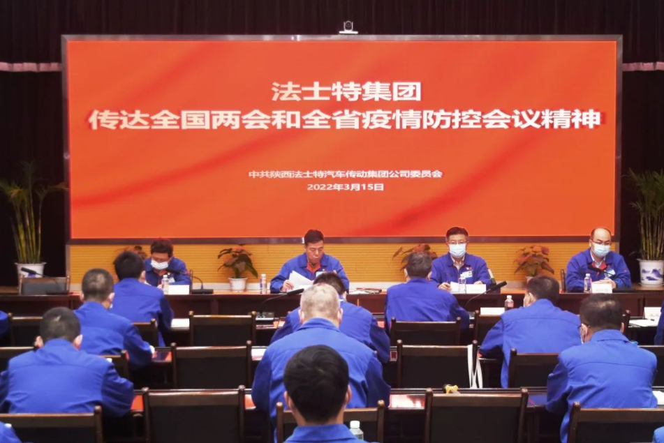 3月15日,法士特集团召开传达学习全国两会精神和全省疫情防控会议精神视频会。党委书记、董事长严鉴铂出席并传达学习。