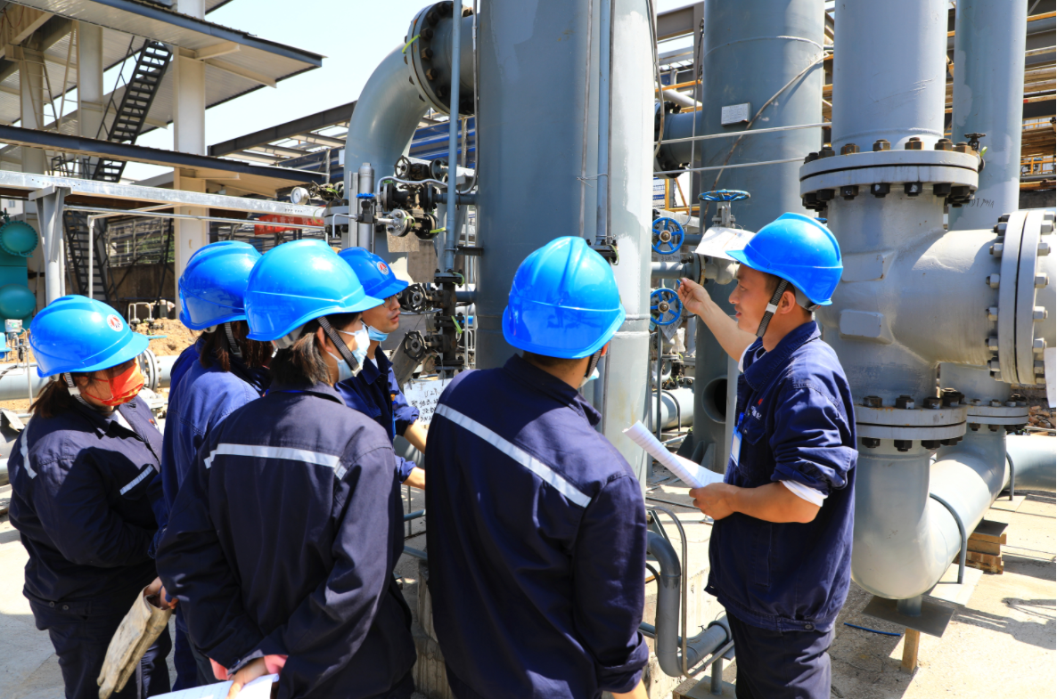 “这是聚结式过滤器,是焦炉煤气进入膜分离器之前一个重要的气体净化装置,它的下部用于气液分离,可初步脱除气体中夹带的水和颗粒物,上段是由若干聚结式滤芯组成的过滤段,可高效脱除极其细小的气液相组分,过滤精度达到0.01μm。” “这个阀门是聚结式过滤器排液阀门,聚结式过滤器液位到达30%会导致系统联锁跳车,这组阀门主要是控制聚结式过滤器液位,按照工艺要求,聚结式过滤器液位指标控制在10%以下。”5月17日上午10:30分,在陕焦公司焦炉煤气综合利用项目膜提氢装置区,醇氨车间合成氨各岗位人员正在热烈交流着。 近日,陕焦公司醇氨车间抓住检修的良好契机,组织合成氨各岗位人员利用工作间隙,走进现场,亲近设备,以“你问我答”式的交流培训,为新项目的顺利投运做好的准备。 据了解,自焦炉煤气综合利用项目开工建设以来,合成氨岗位人员全力服务在项目建设的各个现场,协调办理各种票证、登记到厂备件信息、监督施工现场安全、配合设备阀门安装等等,虽然有时候很辛苦,尤其是在项目建设初期,时间紧,任务重,压力大,加班加点几乎成为常态。但在他们看来,这恰恰是一次全新的、难得的学习机会。 “大家围在一起,摸着设备阀门,顺着管道管线,看工艺流程、介质走向和阀门构造原理,对不懂的问题,开诚布公地交流探讨,每个人都真诚的分享着自己查阅的资料,感觉学习氛围感很足。”合成氨岗位人员赵晨畅谈着现场培训感受。 “从项目建设初期到现在装置区每一到管线的焊接、每一个阀门的安装调试、每一块仪表的调试,我几乎都参与其中,原本以为自己对系统足够熟悉,可今天在和大家交流过程中发现,对有些设备上的部件和功能,我了解得还不够全面,还要向大家多学习,多讨教。”合成氨岗位人员杜佳说。 现场交流互动式的培训,在不耽误工作的同时有效提高了员工岗位技能水平,为员工提供了自我检查、学习他人、取长补短的机会,真正做到了检修培训两不误,达到了学习培训的实效。