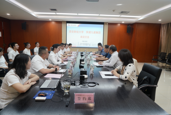 5月26日,西安财经大学副校长傅彤带队赴榆,与九建集团就进一步深化校企合作,实现共赢发展进行座谈交流。 集团党委副书记、总经理王彤出席并讲话,座谈由集团副总会计师、财务管理部部长邵立兵主持。 期间,双方一同观看了九建集团企业宣传片,并进行深入友好交流,就进一步创新合作模式、强化人才培养、实现共赢发展达成共识。 傅彤在致辞中,介绍了西安财经大学基本情况,并对九建集团近年来发展取得的成就给予了高度评价。 他表示,希望校企双方以本次签约暨揭牌仪式为契机,在合作框架内,充分发挥各自优势,加强沟通,互信合作,共同把这次合作做实、做细、做好。 通过双方共同努力,把本次合作推向新的高度,实现学生、学校、企业三方共赢,培养出更多、更好的优秀人才。 王彤对傅彤一行的来访表示欢迎,并就九建集团的概况、市场布局和发展优势进行了简要介绍,预祝西安财经大学建校70周年庆祝活动取得圆满成功。 他表示,西安财经大学办学历史悠久、专业优势突出,为社会培养了一批又一批专业人才,在行业内颇负盛名。 他指出,今后,九建集团将依托双方传统友谊,充分发挥企业平台优势与投资、设计、施工、管理等全产业链优势,主动参与、深度融入学校发展战略。 着力围绕人才培养、科研立项合作、科研项目推进等方面强化沟通交流、深化互信合作,与校方共同探索更为广泛、更加灵活、更加深入的校企合作新模式。 随后,在双方参会人员共同见证下,傅彤与王彤签订校企合作协议。 西安财经大学商学院院长杨太康与集团党委组织部、人力资源部部长张瑞共同为“西安财经大学就业实习基地”揭牌。 就业实习基地的搭建,将为双方为推进校企合作、实现产教融合,提高人才培养质量发挥重要作用。 参加仪式的还有西安财经大学商学院副院长舒伟,国际教育学院副院长郝俊卿,商学院教师李若弘与集团相关职能部门负责人及西安财经大学在职青年校友。
