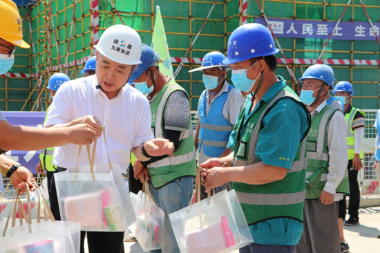 炎炎夏日,骄阳似火,七月的西安热浪汹涌来袭、气温不断升高。 7月7日,陕建集团党委副书记杨兴斌赴集团西安市枣园村城中村改造项目慰问一线劳动者并在现场进行了调研座谈。陕建集团党委宣传部部长、企业文化部经理杨英龙,安全监督管理部副经理吉卫星,九建集团党委书记、董事长张国华陪同。 期间,杨兴斌一行深入施工现场,实地察看了项目建设进展情况,并与现场农民工代表和一线管理人员亲切交流,为他们送去了绿豆、冰糖等防暑降温物资,叮嘱项目部务必合理安排时间,切实做好高温天气下的安全生产和防暑降温工作。 座谈会上,杨兴斌听取了枣园村城中村改造项目生产进度、安全管理、科技质量、党建引领等方面工作汇报,及九建集团近年来发展情况与相关工作部署安排,还亲切询问了企业在发展运行过程中需要解决的问题及困难。 杨兴斌对项目全体参建人员,酷暑高温之下工作力度、工作激情丝毫不减的实干精神与拼搏姿态予以肯定,并就九建集团近年来发展情况及相关工作部署安排进行了点评。 勉励九建集团无论是在省内市场,还是省外市场,都要抓住市场契机不松懈,立足当地民风民俗,结合企业经营实际,不断坚持“走出去”发展与高质量发展不松劲。 与此同时,杨兴斌还就进一步强化暑期施工现场管理工作进行了着重强调。 他要求,施工现场一是要做好暑期降温,开展关心关爱活动,连日高温天气下,项目部要加强人员防暑,做好饮食、通风等措施。 二是要提高安全生产意识,今年无论是“3·21东航空难”,还是“湖南长沙居民自建房倒塌事故”等外部单位安全事故频发,我们要引以为戒,高度重视施工安全。 三是要重视党建文化引领,把党建工作注入到企业文化中,切实发挥党员先锋、领导班子带头模范作用,深入到项目中主动服务,开展精细化管理、全过程参与,及时协调解决问题。 集团四公司及项目现场相关负责人参加座谈。