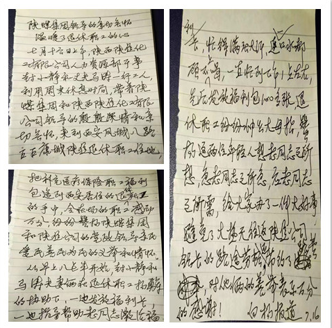 7月16日上午,在陕焦公司人力资源部的安排下,人力资源部薪酬社保主管封小静和其丈夫,利用周末休息时间,来到西安市凤城八路EE康城陕焦公司退休职工居住地,把陕煤集团补充医疗保险职工福利包送到居住在西安市陕焦退休职工手中。 夫妻俩在退休职工杨勇军、侯金涛、陈向阳、王桂琴等人的协助下,一边签字发放福利卡,一边指导帮助退休老同志现场激活、指导使用福利卡。为了节约时间,提高效率,面对酷暑,夫妻俩不吃不喝,从早上8:30分一直忙到下午1:00左右,先后发放福利包100多张。退休职工纷纷伸出大拇指,赞扬这两位年轻人想老同志之所想、急老同志之所急、应老同志之所需,将好事办到了大家心坎里。 在热浪滚滚的盛夏,面对疫情反复,陕焦公司人力资源部不惧“烤”验,送福利上门,给行动不便的退休老职工沏了一杯防暑降温的“清心茶”。在场的退休职工感动万分,纷纷赞扬陕煤集团的这一为民举措和“亲民、爱民、惠民、为民”的朴素情怀。 写信人: 陕焦公司退休职工白杨 2022年7月16日