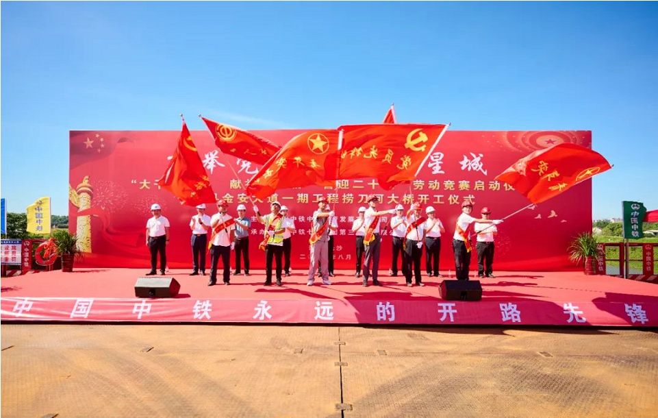 8月13日,中铁七局三公司联合中铁中南公司举办的“高举党旗 建功星城”暨“大干九十天 献礼十五载 喜迎二十大”劳动竞赛活动启动仪式和金安大道一期工程捞刀河大桥开工仪式在公司金安大道项目举行。长沙县政府副县长冯页新,长沙县交通运输局党组书记、局长王志国,长沙县松雅湖生态新城发展中心党组书记、主任罗卫滋,长沙县黄花镇党委书记张辉、镇长刘登,长沙县安沙镇镇长龙江,中铁交通投资集团有限公司副总经济师、中铁中南公司党工委书记、执行董事裴远建,中南公司副总经理黄文理,中铁七局三公司党委书记、执行董事刘培峰等领导出席活动并讲话。中南公司副总经理(主持工作)陈国良主持活动。 活动上,冯页新宣布金安大道捞刀河大桥工程正式开工,黄文理宣读了“大干90天”专项劳动竞赛方案,公司金安大道项目负责人作表态发言,全体职工进行安全质量宣誓,各参建单位代表进行廉洁承诺签名,与会领导为各参建单位“党员先锋队”“工人先锋号”“青年突击队”进行授旗。 陈国良在致辞中号召全体参建单位严格落实长沙县委、县政府及有关单位的工作部署要求,不断提升项目管理水平,科学提高施工生产效率,优质高效干好捞刀河大桥工程,为长沙县率先打造“三个高地”,落实质量“星动力”品质“强省会”要求,助力松雅湖生态新城“三年成形,五年成城”战略目标实现贡献中铁力量。 刘培峰指出,中铁七局三公司始终与星城人民风雨同舟、携手同行,结下了深情厚谊,先后参与了湖南省众多重点工程建设,特别是参建的长沙机场大道项目更是荣获“国家优质工程奖”和公路交通优质工程奖(李春奖)等多项国内顶级荣誉,树立了诚信重诺的良好形象,为湖南经济社会发展贡献了央企力量。他强调,广大党员干部职工要始终站在服务地方高质量发展,树誉湖南基建市场的高度,坚持高起点、高标准、严要求,以主题活动为起点,发挥党建引领作用,展现七局筑路风采;以主题活动为抓手,落实劳动竞赛要求,发扬七局铁军精神;以主题活动为载体,强化沟通协调机制,打造驻地样板工程。 裴远建指出,此次活动旨在进一步动员全体干部职工认清形势提振精神、锚定目标迎难而上,凝聚起各参赛项目力量智慧。要准确把握形势任务,坚定信心攻坚克难;要精心组织推进实施,明确责任细化分工;要高度重视安全质量,系统提升施工水平;要持续强化大局意识,严格管控目标考核;要营造浓厚舆论氛围,形成强大宣传声势。他号召党政工纪团一齐上手,充分发扬“勇于跨越 追求卓越”的中国中铁企业精神,共同打一场比学赶超、提质增效的攻坚战,以优异的成绩献礼党的二十大胜利召开。 中铁中南公司及各参建单位代表共计130余人参加此次活动。