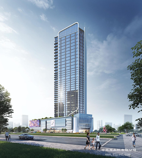 近日,中联西北院华诚所成功签约鄂尔多斯伊湘国际大厦项目。 项目位于鄂尔多斯市伊金霍洛旗,与成吉思汗广场及鄂尔多斯市政府隔河相望。总建筑面积约10万平方米,建筑高度170.15米,地上四十层,地下四层,功能包括购物中心、商务办公、公寓及辅助用房。 项目采用现代简约的设计风格,塔楼立面以蓝灰色幕墙为主色调,深色玻璃穿插其间点缀,与白色弧形构件、深色金属百叶、银灰色格栅有机结合;商业裙房部分以浅色玻璃幕墙为主,采用大开大合的立面划分方式,圆角构件与横向线条相结合,整体色调元素协调统一,呈现出和谐规整又现代灵动的建筑风格。 此外,设计团队还在商业裙房东北转角处设置了LED裸眼3D大屏,引流商业人气,预将鄂尔多斯伊湘国际大厦打造成为城市新地标。