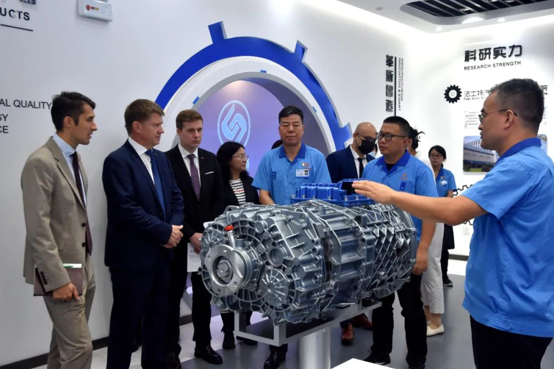 9月16日,白俄罗斯驻华大使尤里·先科一行访问法士特西安高新厂区。法士特集团党委书记、董事长严鉴铂对客人的到来表示欢迎,并陪同参观了企业数字化展厅。 严鉴铂简要介绍了企业国际合作和法士特欧洲公司的情况。他表示,法士特始终坚持“高质量引进来、高水平走出去”,主动融入国家“一带一路”发展战略。作为法士特在海外的第一家合资企业,法士特欧洲公司的建成投产标志着法士特在全球化布局、国际化发展中迈出崭新步伐。希望双方共享“一带一路”机遇,深化交流,增进友谊,共同发展。 尤里·先科对法士特先进的智能制造水平给予高度评价。他表示,白俄罗斯是最早支持“一带一路”倡议的国家之一,两国相互交流持续拓展,各领域合作快速发展。白俄罗斯驻华大使馆将发挥桥梁纽带作用,积极推动共建“一带一路”高质量发展,创造共同发展新机遇。 法士特集团副总经理王亚锋参加,并陪同客人深入法士特高智新公司参观。