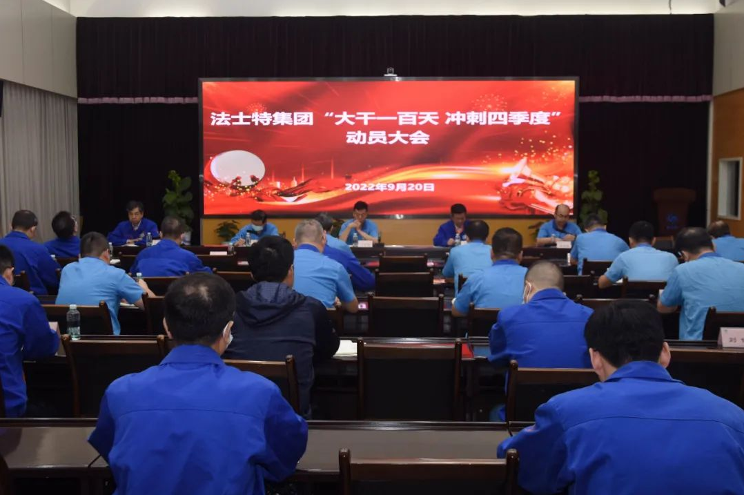 9月20日,法士特集团“大干一百天 冲刺四季度”动员大会在西安高新厂区召开,贯彻落实潍柴动力专题会议精神和要求。法士特集团党委书记、董事长严鉴铂出席并作动员讲话。 严鉴铂号召全体员工:尽锐出战,台台必争,件件闭环,聚焦客户,主动工作,创新方法,以“机遇不容错过,挑战不容失败”的信心和决心,勇对当前复杂内外部环境带来的各种风险挑战,永葆危机意识,永葆发展自信,全力以赴打赢大干一百天、冲刺四季度生产经营攻坚战,助推企业高质量发展行稳致远。 法士特集团总经理马旭耀主持会议。全体领导班子成员出席大会,各部门主要负责人在主分会场参会。