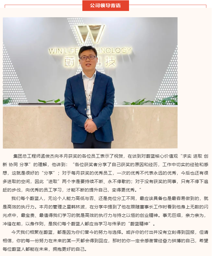 模范|蔚蓝科技8月份“winlife之星”表彰会