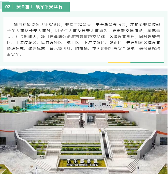 9月28日,西安外环高速公路南段通车仪式在中铁七局三公司承建的子午服务区隆重举行,公司党委书记、执行董事刘培峰受邀出席。 西安外环高速公路(南段)地处西安市高新区、长安区、蓝田县,项目概算总投资134.82亿元,路线起于西安市鄠邑区谷子硙,途经西安市高新区、长安区、蓝田县三个区(县)共17个街办103个自然村,终点位于蓝田县沪陕高速蓝田东立交东侧,主线全长70.16公里,采用双向六车道高速公路标准设计,设计时速120公里,整体式路基宽度34.5米,共设11处互通式立交,其中枢纽立交4处,与西沣路、子午大道等主要城市道路实现高标准互通。此次西安外环高速公路(南段)的建成通车,也标志着全长270公里的西安外环高速正式建成。 中铁七局三公司承担了西安外环高速公路南段5.949公里的施工任务,标段起点位于长安县子午镇张村,终点位于长安县王曲镇满江红村,主线桥梁涉及跨越子午大道和长安大道两条城市主干道,标段内设置有子午服务区和长安南互通式立交。 项目地处秦岭保护区北麓,为打造绿色生态工程,项目团队通过边绿化、边建设的方式,建成了西安首条集绿色、节能、低碳、智能、创新、科技为一体的高速公路,实现了建设和保护的同步推进。 随着西安外环南段高速公路正式通车,公司承建的子午服务区也正式开业,这是陕西省首个开放式服务区,也是陕西第一个休闲运动主题服务区。可进行聚会、宴会、联欢、游艺、拓展、培训等各类活动,为司乘提供“食、购、娱、游、行、宿”全方位服务。集特色经营、休闲、运动功能于一体,包含开放式共享服务区、AR数字运动体验馆、唐风市井体验、房车庭院加帐篷营地、地方特色美食加品牌餐饮31种经营业态,服务配置7个卫生间、2个母婴室、专业汽修间、近800个停车位、油气一体综合能源岛和40个新能源充电桩。 工程建设过程中,该项目全体人员主动出击,克服了征拆困难、疫情影响、管线复杂等不利因素,疫情期间稳抓防控促生产,汛期防范抢险保进度,全运期间多重举措控安全,在有效条件中不断掀起大干高潮,最终圆满高效攻克了路线上跨黑河管道、石砭峪管道、子午大道、长安大道等西安主供水管道及城市主干道等施工重难点,安全、质量、进度、形象等均获得了管理处、建设公司及陕西交控集团的高度评价。 西安外环高速公路全线通车,能够及时分流货车及过境车辆,将极大缓解西安绕城高速交通压力,促进绕城高速畅顺通行,对实现车辆快速转换,便捷群众出行,加密陕西省高速公路骨架,构建大西安综合交通运输体系,优化城市空间布局,拉大西安发展骨架等具有十分重要的意义。