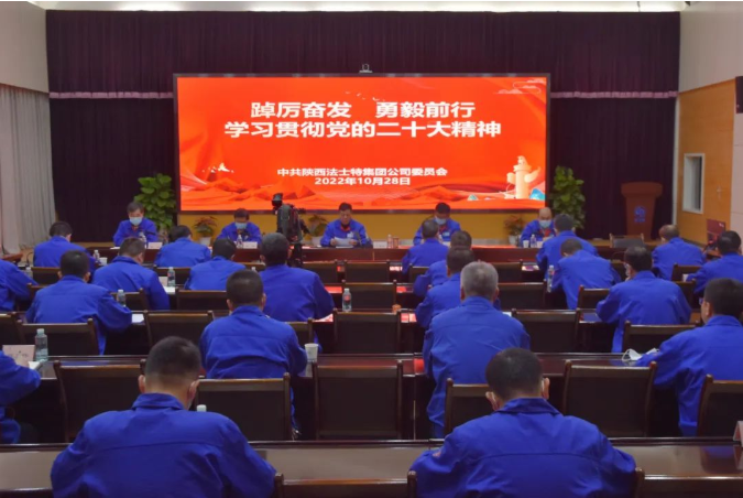 10月28日,法士特集团党委书记、董事长严鉴铂主持召开干部大会,传达学习党的二十大精神和陕西省委常委会(扩大)会议精神,对全集团认真学习深入宣传全面贯彻党的二十大精神作出部署。 会议强调,党的二十大是在全党全国各族人民迈上全面建设社会主义现代化国家新征程、向第二个百年奋斗目标进军的关键时刻召开的一次十分重要的大会,郑重宣示了党在新征程上举什么旗、走什么路、以什么样的精神状态、朝着什么样的目标继续前进,为新时代新征程党和国家事业发展、实现第二个百年奋斗目标指明了前进方向、确立了行动指南。 会议要求,公司各单位要把学习宣传贯彻党的二十大精神作为当前和今后一个时期的首要政治任务。各级党员领导干部要带头学习宣传,切实把党的二十大精神传达到每位员工,把党的二十大精神同实际工作相结合,持续加大稳增长、防风险、强作风工作力度。以踔厉奋发、勇毅前行的奋斗姿态在推动企业实现“十四五”高质量发展中展现新作为、贡献新力量。