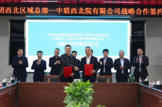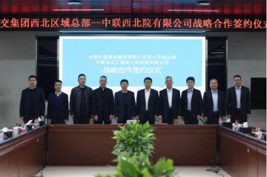 11月9日,中联西北院与中交集团西北区域总部签署战略合作协议。中联西北院党委书记、董事长于文海,中交集团西北区域总部总经理王朝江出席仪式并讲话。 中联西北院总经理、党委副书记赵光杰,中交集团西北区域陕西总部总经理段鑫,中交一公局西北公司总经理文辉,中交一公局西北公司副总经理张天明共同见证签约仪式。 中联西北院党委委员、总经理助理林锐,中交集团西北区域总部副总经理李建军代表双方签约。 中联西北院党委书记、董事长于文海在讲话中表示,希望双方能够以此次战略合作签约为新的起点,加强信息互通,探索合作模式,在城市更新、片区开发、智慧交通、市政基础设施建设、水污染及流域综合治理、投融资及产业导入等方面优势互补、务实合作,携手实现高质量共赢发展。 中交集团西北区域总部总经理王朝江简要介绍了中交集团、中交西北区域总部有关情况,希望双方能够不断发挥各自优势,携手书写高质量发展新篇章。 此次战略合作协议的签订,标志着双方的务实合作翻开了新的一页。双方将以协议签约为契机,进一步落实党的二十大精神,共同谱写一幅“价值共创,成长共享”的美好蓝图。 座谈会前,中交集团西北区域总部总经理王朝江一行参观了中联西北院企业形象展厅、医疗及康养产业发展研究中心。 中联西北院相关职能部门、生产部门负责人,中交集团西北区域总部以及中交一公局西北公司相关负责人参加。