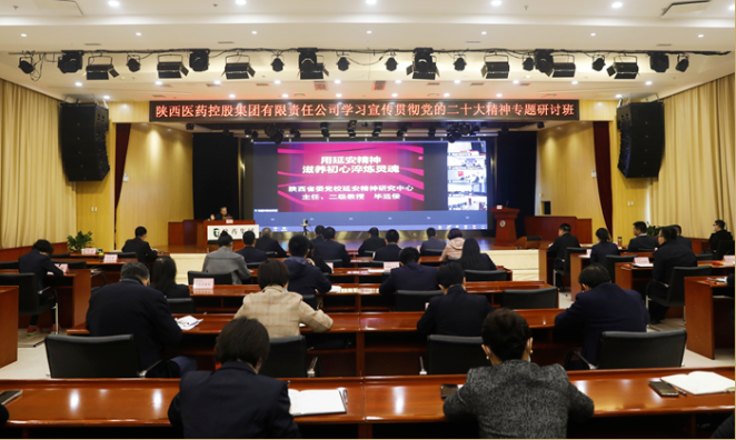 为认真学习宣传贯彻党的二十大精神,按照陕药集团《关于认真学习宣传贯彻党的二十大精神的工作方案》。11月22日、23日,陕药集团举办学习贯彻党的二十大精神专题研讨班,邀请省委理论讲师团成员、“马院院长宣讲团”成员袁文伟教授宣讲党的二十大精神;省委理论讲师团特聘教授、省委党校延安精神研究中心主任毕远佞教授讲授《用延安精神滋养初心淬炼灵魂》;集体学习《中国共产党章程》。 专题研讨班采取线上和线下相结合的方式,集团总部设主会场,权属企业设分会场15个,集团领导班子成员、权属企业领导班子成员和总部中层以上党员干部,共120余人参加学习,围绕“学习贯彻党的二十大精神,对标对表年度目标任务和‘十四五’发展规划,认真查摆问题差距;坚持问题导向、完善思路举措,扎实推进作风建设专项行动,坚决完成各项目标任务”的主题,深入开展交流研讨。