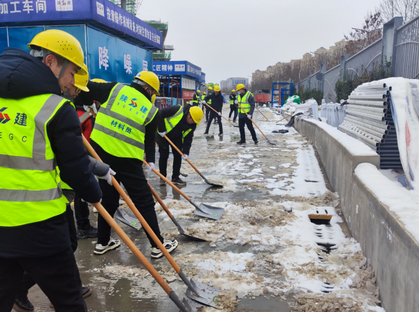 春节临近,走进集团陕西广播电视发展基地(二期)项目施工现场却是一片火热。浓厚的新年氛围让项目团队的建设步伐更加矫健,全体成员坚守岗位,卯足干劲,全力奋进2023年开门红。 近期,面对当地治污减霾二级响应、降雪天气等不利影响,现场管理团队周密部署、强化责任落实,采取成立冬季施工安全工作专班、开展冬季施工安全大检查、制定冬季施工方案、落实防寒保暖物资和道路防滑等一系列重点措施,科学安排工序,统筹协调,全力冲刺工程建设节点目标。 经过现场参建人员加班加点、昼夜施工,项目已提前完成11#楼装修样板间施工、5#、6#楼地下车库负二层混凝土浇筑等多项节前目标节点,东区前置工序桩基、承台开挖施工正火热进行。 施工期间,项目团队持续优化人员分工,按照周、日计划,制定、落实一系列激励保障措施,并由项目负责人带班进行安全检查,施工作业面专职安全员全程旁站监督,及时有效消除隐患,确保安全生产。 此外,为保障混凝土浇筑质量,项目技术团队还与商混站充分协调沟通,合理配比控制质量。入模前,实验员测试塌落度,质量员严控入模温度,浇筑完成后及时采用保温棉进行保温。 降雪过后,项目党小组带领团小组成员开展“清理积雪保畅通”党团共建活动,在施工干道上撒融雪剂、铲雪除冰,防止发生交通事故。 至发稿时,该项目10#、11#楼完成主体封顶,东区挤密桩、支护施工完成,西区车库3、4段主体施工完成,8#楼施工至主体结构二层。 下一步,现场管理团队将始终秉承陕建“向善而建”的企业哲学,一以贯之践行好“为客户创造价值,让对方先赢,让对方多赢,最终实现共赢”的合作共赢理念。合理安排工序、科学组织施工,不断加快建设步伐,用优质履约讲好陕建故事,以实干实绩擦亮企业名片。