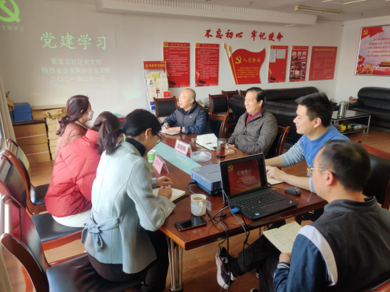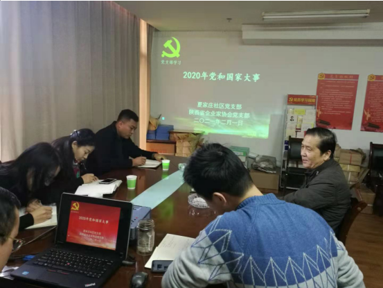 2月1日上午,陕西省企业家协会党支部召开党员大会,组织协会全体党员和工作人员进行党建学习。协会共建党支部夏家庄社区党支部副书记史仙丹、社区主任王颖也一同参加了学习。大会由党组织负责人、会长段克明同志主持。 大会首先传达学习了省民政厅社会组织党委《关于命名表彰“评星晋级、争创双强”活动省级直接登记社会组织和脱钩后行业协会商会星级党组织的通知》和《关于在星级社会组织党组织开展党建结队指导工作的通知》,表彰决定中对获得星级的党组织给予通报表彰,我会荣获四星级党组织。 接着按时间脉络,就2020年党和国家发生的大事特别是党中央统揽全局,统筹疫情防控和经济社会发展取得的重大成果、习近平总书记来陕考察、全国两会、十九届五中全会、全面建成小康社会取得伟大历史性成就、决战脱贫攻坚取得决定性胜利、“十三五”圆满收官,“十四五”全面擘画等党和国家重要大事及取得的伟大成就进行了再回顾再学习再领会再落实。 会上,夏家庄社区党支部副书记史仙丹把去年社区在党组织建设、防控疫情、迎接全运会等方面的工作及取得的成绩进行了介绍,并就进一步加强共建党支部工作提出了意见和建议,社区王主任就社区的扶贫帮困工作进行了介绍。 协会党组织负责人、会长段克明作了总结讲话:首先代表协会对史书记和王主任代表社区党支部和我会共同进行党建学习表示热烈的欢迎!他指出,自我会与夏家庄社区党支部结队共建以来,两个党支部在上级党委的领导下,以党建工作为引领,以结队党建活动为载体,立足各自本职工作,结合行业工作特点,在防控疫情、助力企业复工复产、社区扶贫帮困等方面做了大量的工作,希望我们继续保持常态化的共建结队工作机制,进一步整合优势资源,加强党建工作经验交流,加大行业发展合作力度,实现党建引领和业务工作同促进共提升,共享结队共建成果,为新时代社区和协会工作作出新的贡献。会上,史副书记、王主任代表夏家庄社社区党支部向我会赠送了“2020年度共驻共建先进单位”荣誉牌匾。