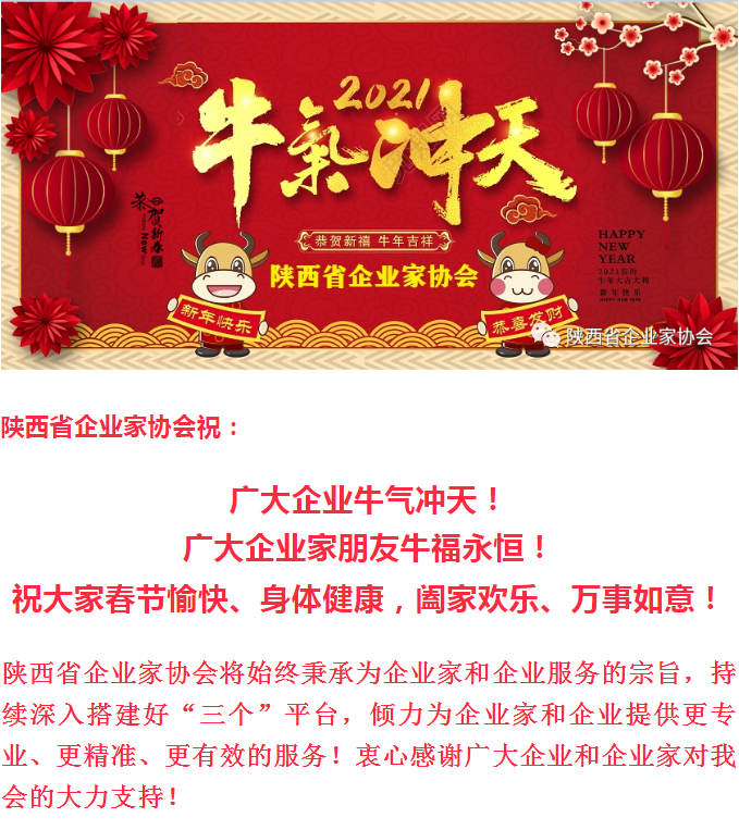 陕西省企业家协会祝广大企业和企业家朋友新春快乐!