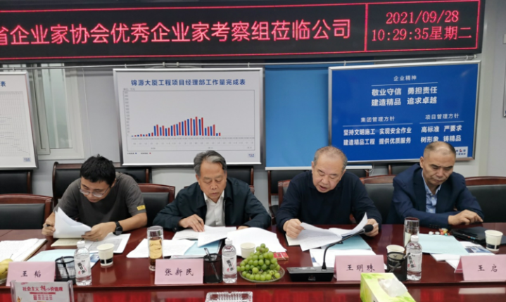 陕西省第九届优秀企业家评审办公室按照程序,依据有关规定,分别于2021年9月28日至30日,10月14、15日,由西安市政协常委、西安市企业及企业家联合会会长(原西安市工业和信息化委员会主任)张新民带队,会员部主任王明珠、陕西省企业家协会培训外联部副部长王韬及工作人员一行4人,在咸阳市企业及企业家联合会会长杨战武,荣誉会长吴礼生,工会主席、副会长王启,副会长高秀玉,常务副秘书长王飞和副秘书长许育潮、李瑛等人全程分别陪同下,莅临“陕西省第九届优秀企业家”的10位入围企业家了进行考察评审。 28日上午9点,省考评组一行4人在咸阳市企联会工会主席、副会长王启,副秘书长许育潮、李瑛的陪同下对陕西秦源建工集团有限公司总经理朱刚飞进行考察评审。考评组首先介绍了陕西省第九届优秀企业家评选活动的初审情况。按照预定的程序分别进行。在听取企业介绍、先进事迹、个人谈话、民主测评,副会长王启代表咸阳企联会发表了推荐意见,考评组组长张新民从五个方面进行了总结,他在总结时讲到:朱刚飞是一个讲义气、讲诚信的人,是一个敢于担当的人,是一个有孝心的人,是一个有正能量的人,是一个乐于奉献的人,已符合省优秀企业家的评选条件。 图片说明:陕西秦源建工集团有限公司考察调研现场一角 图片说明:考察组在认真工作,听取汇报 图片说明:陕西秦源建工集团有限公司朱刚飞和他的团队在汇报情况 28日下午3点,省考评组一行4人在市企联会工会主席、副会长王启,常务副秘书长王飞、副秘书长许育潮、李瑛的陪同下对陕西如意广电科技有限公司党委书记、董事长叶伟进行考察评审。考评组介绍了初审情况并按照预定的程序分别进行。首先听取工会主席边静介绍企业情况、纪委书记杨杰介绍叶伟先进事迹和民主评议后,副秘书长许育潮代表咸阳企联会发表了推荐意见,他说:陕西如意广电公司是目前咸阳国有生产企业,是走在改革前列的企业。2019年贯彻中省市要求带头参加混改。第一个在国企进行混改,效果明显。2020年在抗击疫情,复工复产过程中。如意广电公司的广播机、变压器、核酸检测配套设备都能及时复产复工,取得了良好的经济效益和社会效益。 关于企业党建,昨天在咸阳市委召开的全市党建工作会上,市委书记杨长亚是这样说的:“我们一些企业的党组织建设,党的建设,党的活动不经常,形式单一。党建工作与其发展融合度不高,甚至有名无实,处于瘫痪状态,刚才我听了发言,我们陕西如意的发言,我还是很喜欢,也可能是对于如意这个品牌的一种眷恋、一种记忆,企业负责人叶伟刚才的讲话讲的很好。企业产品是中低端,靠的是啥?改革创新,在这个企业体现出来了。把办公楼改造成职工公寓,就和职工走近了,更加亲近职工,做好了职工的贴心人。” 考察评审组长张新民在总结时讲到:陕西如意广电从央企到市企,从一业到多业,从独资到合资,是一个发展质量比较高的企业。认为叶伟是一个与企业同呼吸、共命运走过来的干部。是一个重党建、重教育、重管理、讲大局的人,是一个敢于担当、决策能力比较强的人,是一个精管理富有敬业精神的人,是一个有思想、有魄力、敢于改革的人,是一个低调务实、不张扬的人,一个严于律己,以身作则的人,已符合省优秀企业家的评选条件。 图片说明:陕西如意广电科技有限公司考察现场 图片说明:考察组在在听取汇报 图片说明:董事长叶伟和他的团队正在汇报情况 图片说明:考察组领导与如意广电公司领导班子合影 29日上午9点,省考评组一行4人在市企联会工会主席、副会长王启,常务副秘书长王飞,副秘书长许育潮、李瑛的陪同下对陕西咸糖名酒有限公司总经理刘文捷进行考察评审。考评组介绍了初审情况并按照预定的程序分别进行。在听取企业介绍、先进事迹、民主评议,工会主席、副会长王启、常务副秘书长王飞、副秘书长许育潮、李瑛分别发表推荐意见,考察评审组长张新民在总结时讲到:作为咸阳市糖酒公司改制比较到位,以经营名酒为主利润高,经营利润增长快。他认为,刘文捷有大局意识,有担当的精神,有较强的协调能力。有创新精神,有梦想,能在工作中严于律己、自觉遵守规章制度,已符合省优秀企业家的评选条件。 图片说明:刘文捷和他的团队正在汇报情况 图片说明:考察组在在听取汇报 29日下午3点,省考评组一行4人在市企联会工会主席、副会长王启,常务副秘书长王飞,副秘书长许育潮、李瑛的陪同下对咸阳城投置业有限公司董事长、总经理雷军进行考察评审。考评组介绍了初审情况并按照预定的程序分别进行。在听取企业介绍、先进事迹、民主评议,副秘书长许育潮代表咸阳企联会发表了推荐意见,考察评审组长张新民在总结时讲到:城投置业公司是一个重党建、有很高的政治敏锐性,是一个精管理重质量的企业。雷军是一个敢担当、敢负责的人,是一个以身作则亲力亲为、注重细节的人,是一个十分关心职工,改善员工生活福利的领导,是一个知人善任的领导的人,已符合省优秀企业家的评选条件。 图片说明:考察组正在听取汇报 图片说明:左二、董事长、总经理雷军,左三、集团公司工会主席王晓芳,左一支部书记赵明海 30日上午9点,省考评组一行4人在市企联会会长杨战武,常务副秘书长王飞、副秘书长许育潮的陪同下对陕西华彬能源集团有