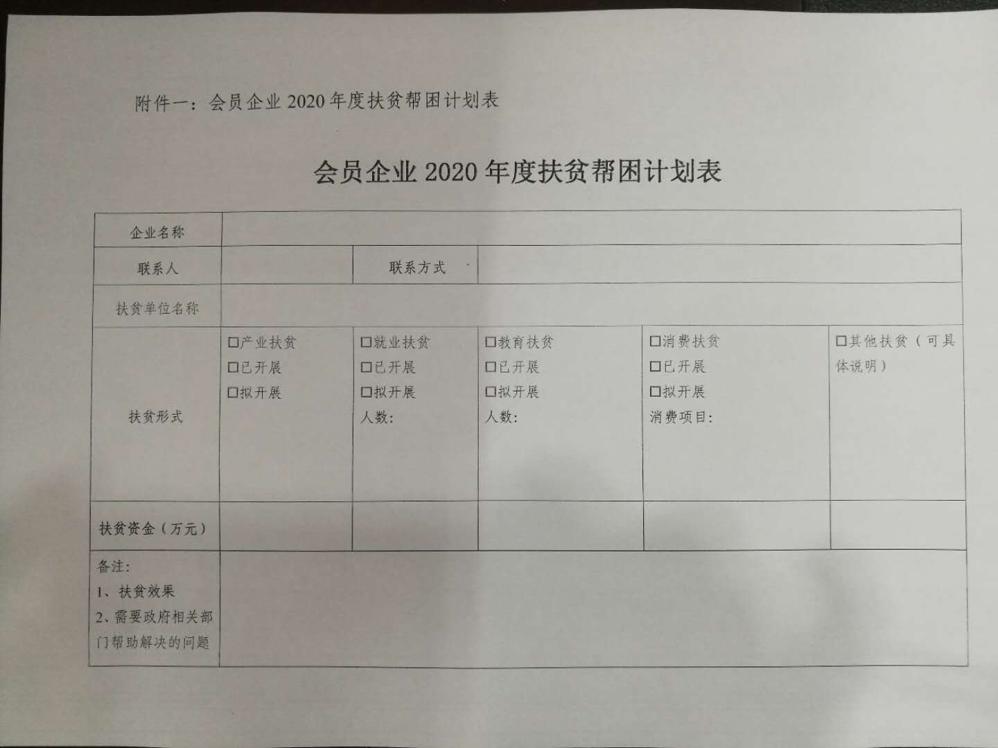 附件一:会员企业2020年度扶贫帮困计划表