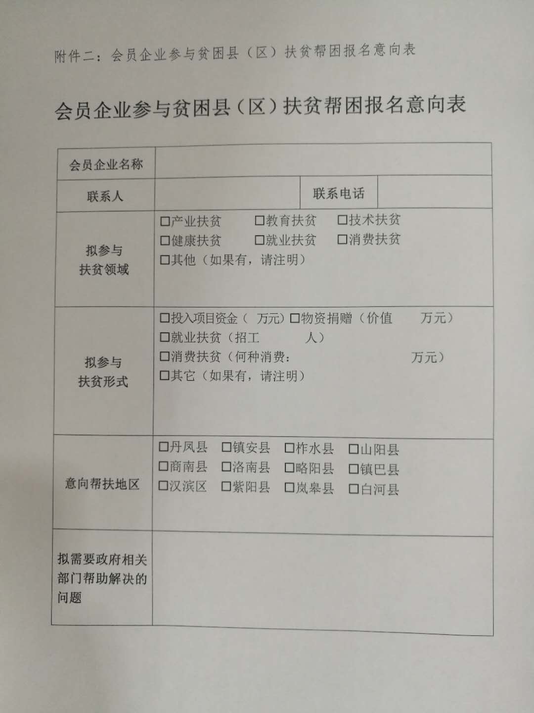 会员企业参与贫困县(区)扶贫帮困报名意向表