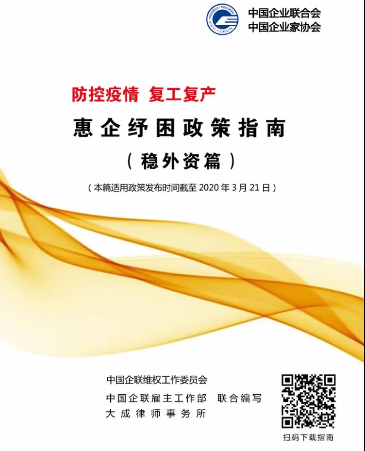 中国企业联合会、中国企业家协会 惠企纾困政策指南 (稳外资篇)、(对外投资合作篇)、(稳外贸篇)